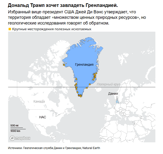 Начнём с аргумента о природных ресурсах. Мой коллега по Bloomberg Opinion Хавьер Блас убедительно показывает, что разговоры о «минеральном Эльдорадо» сильно преувеличены. Хотя на острове действительно имеются значительные запасы полезных ископаемых, датское геологическое исследование 2023 года выявило лишь около 50 потенциально перспективных месторождений. Причём половина из них расположена к северу от Полярного круга, что делает их освоение особенно сложным.