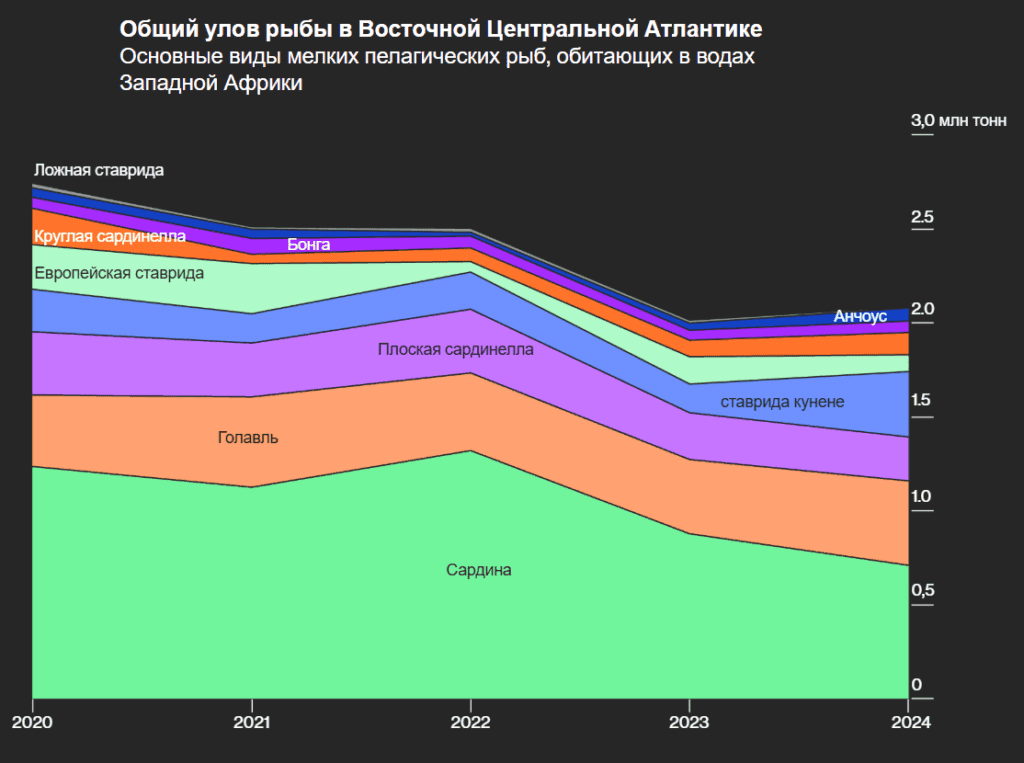 В июне Габон объявил о разрыве соглашения с ЕС после 18 лет сотрудничества, назвав его «несбалансированным». Долгое соглашение с Сенегалом завершилось в ноябре 2024 года после жалоб ЕС на незаконный промысел (местные рыбаки годами говорили об аналогичных нарушениях иностранных судов).