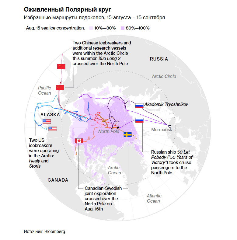 Между тем США беспокоит трафик в регионе. В июле Береговая охрана США обнаружила ледокол, управляемый Полярным исследовательским институтом Китая, в районе, который США считают своей расширенной континентальной окраиной. В августе Береговая охрана США сообщила, что отслеживает пять китайских исследовательских судов.