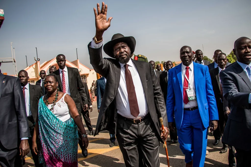 Президент Южного Судана Сальва Киир прибывает на политический митинг в Джубе, Южный Судан, 18 марта 2025 года. Фото: Эшли Хамер/AFP/Getty Images via Foreign Policy